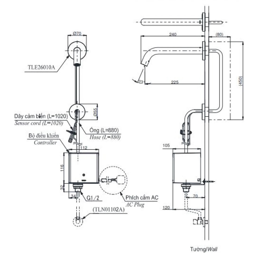 Đánh giá Vòi lavabo gắn tường cảm ứng tự động TOTO TLE26010A