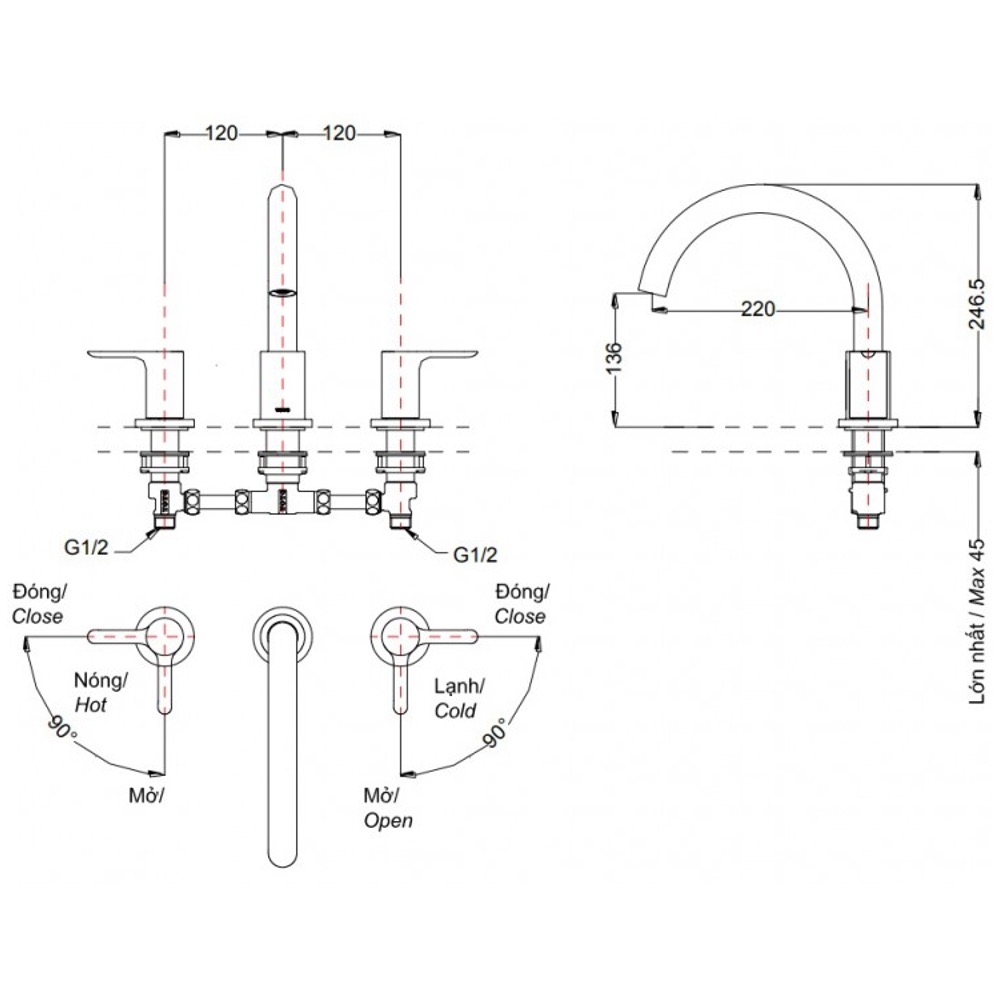 Đánh giá Vòi xả bồn 3 lỗ TOTO TBS01201BA