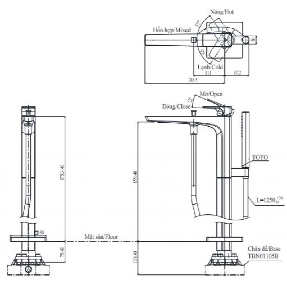 Đánh giá Vòi xả bồn đặt sàn kèm sen tắm TOTO TBG07306AA TBN01105B