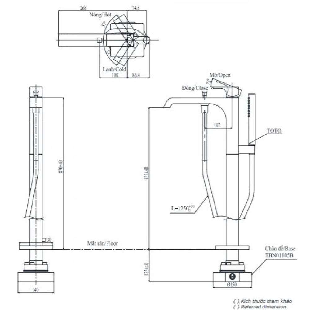 Đánh giá Vòi xả bồn đặt sàn kèm sen tắm TOTO TBG08306AA TBN01105B