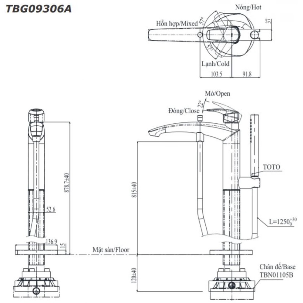 Đánh giá Vòi xả bồn đặt sàn kèm sen tắm TOTO TBG09306AA TBN01105B