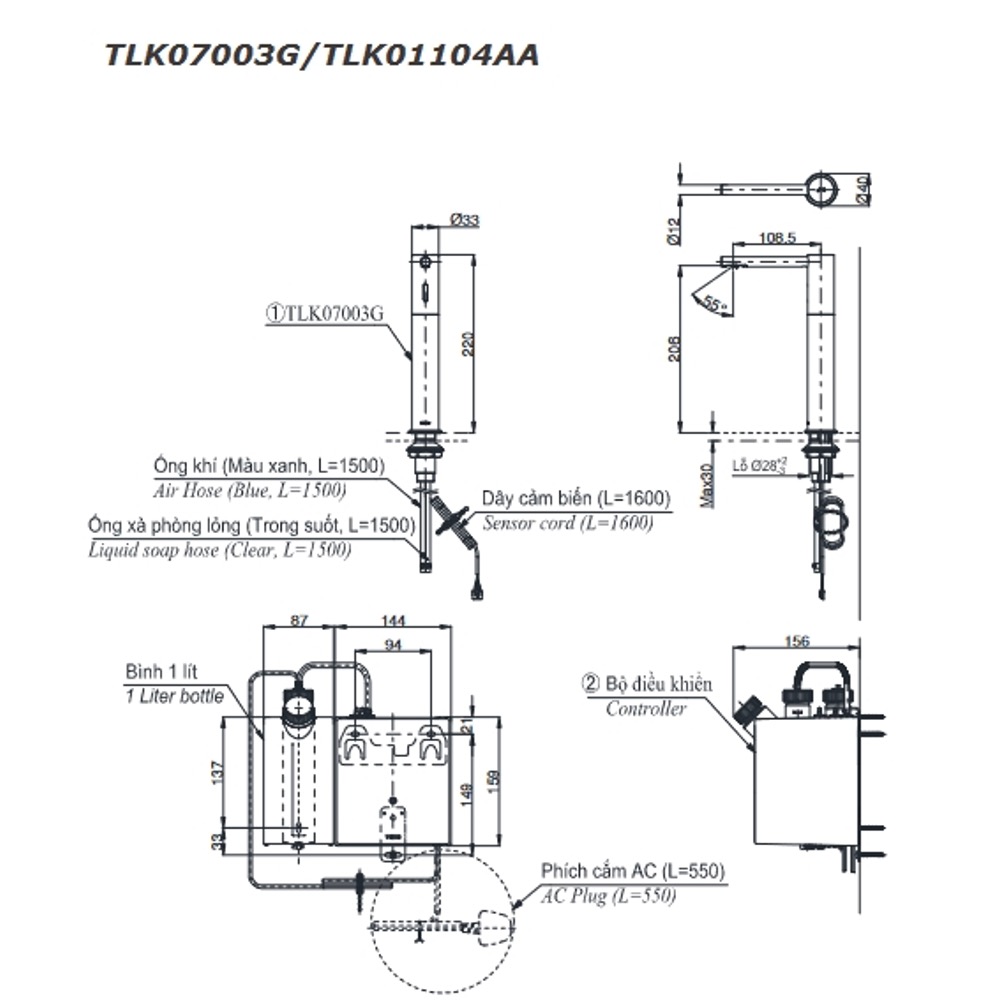 Sản phẩm chưa bao gồm bộ điều khiển. Cần sử dụng với dung dịch xà phòng theo khuyến cáo của TOTO